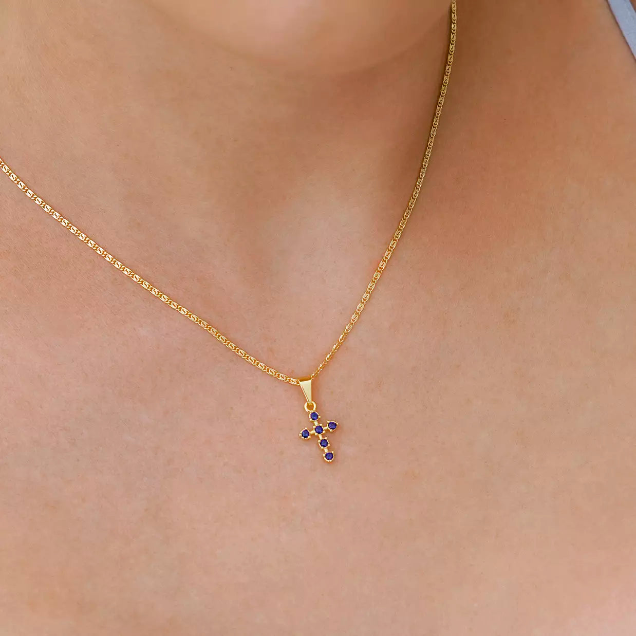 Cadena Caracol (45cm) + Dije Cruz 6 Circonias azul