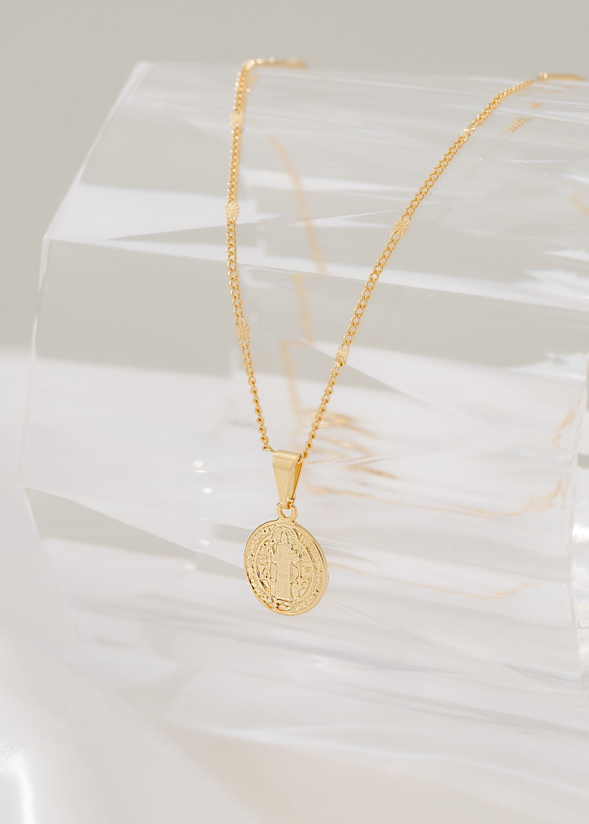 Cadena cubana destellos punteras (45cm) + dije san Benito