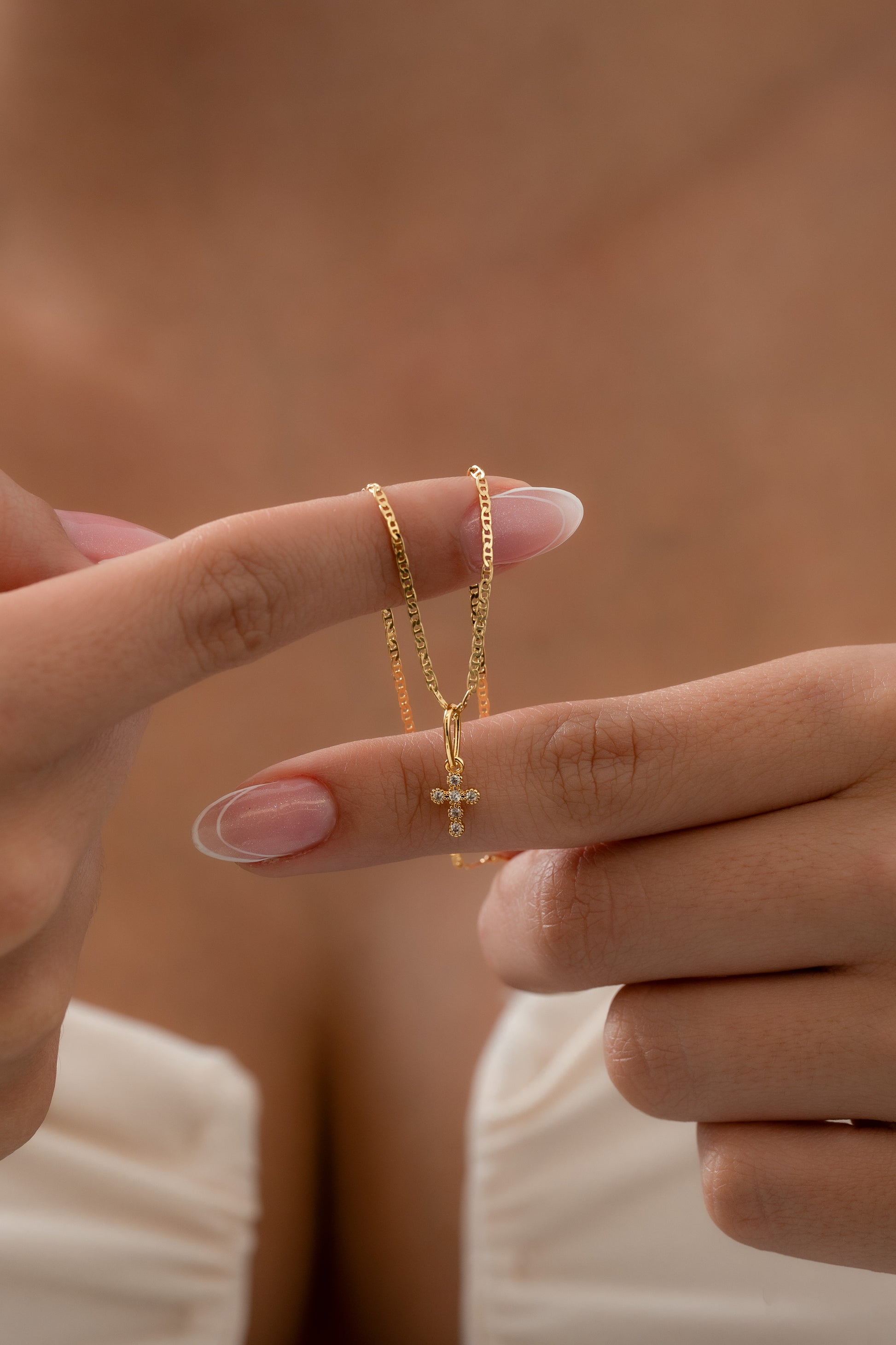 Cadena Escalera (40cms) + Dije cruz redondeada (1.6cm)