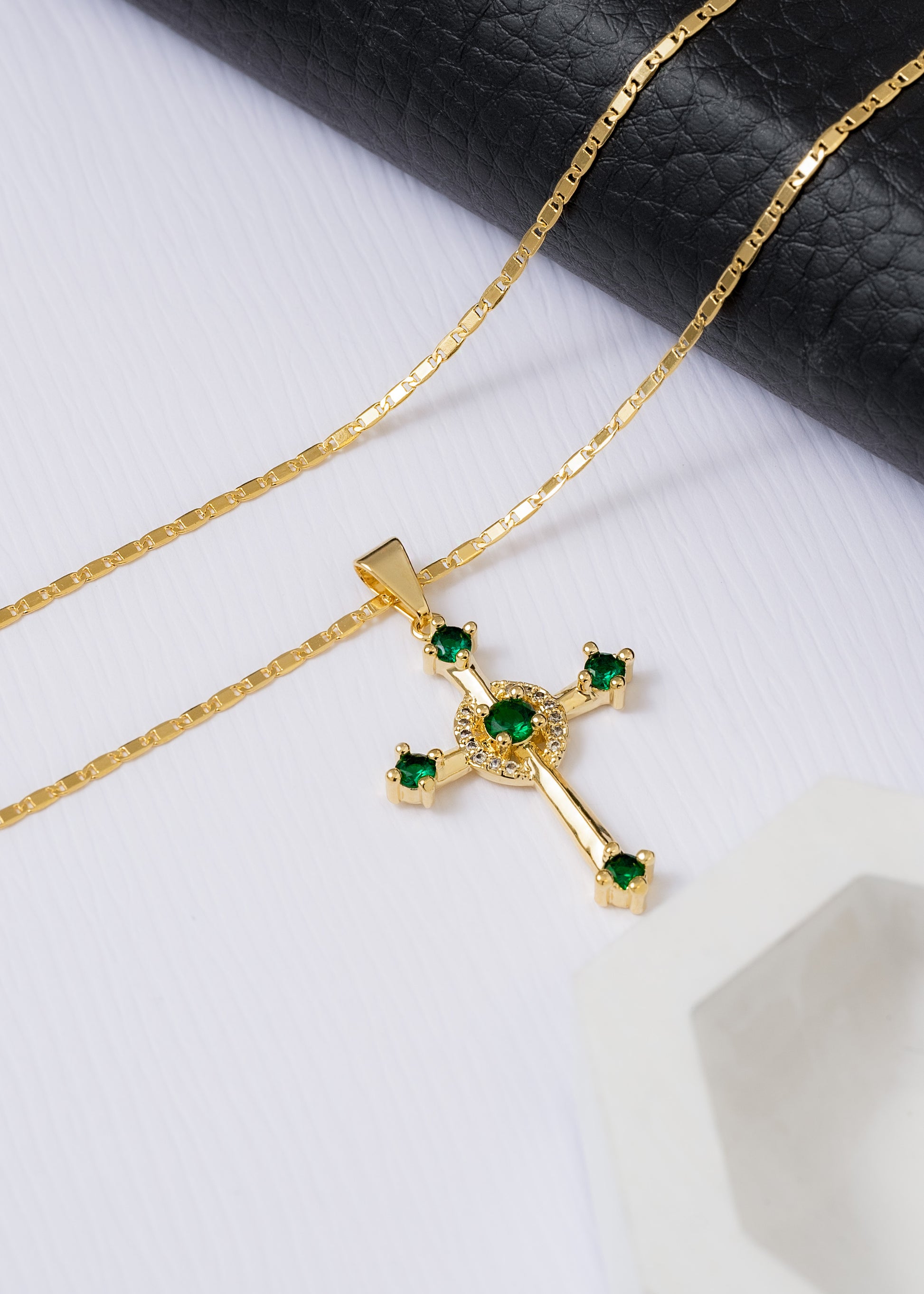 Cadena Escalera delg. Plana (65cm) + Dije cruz verde