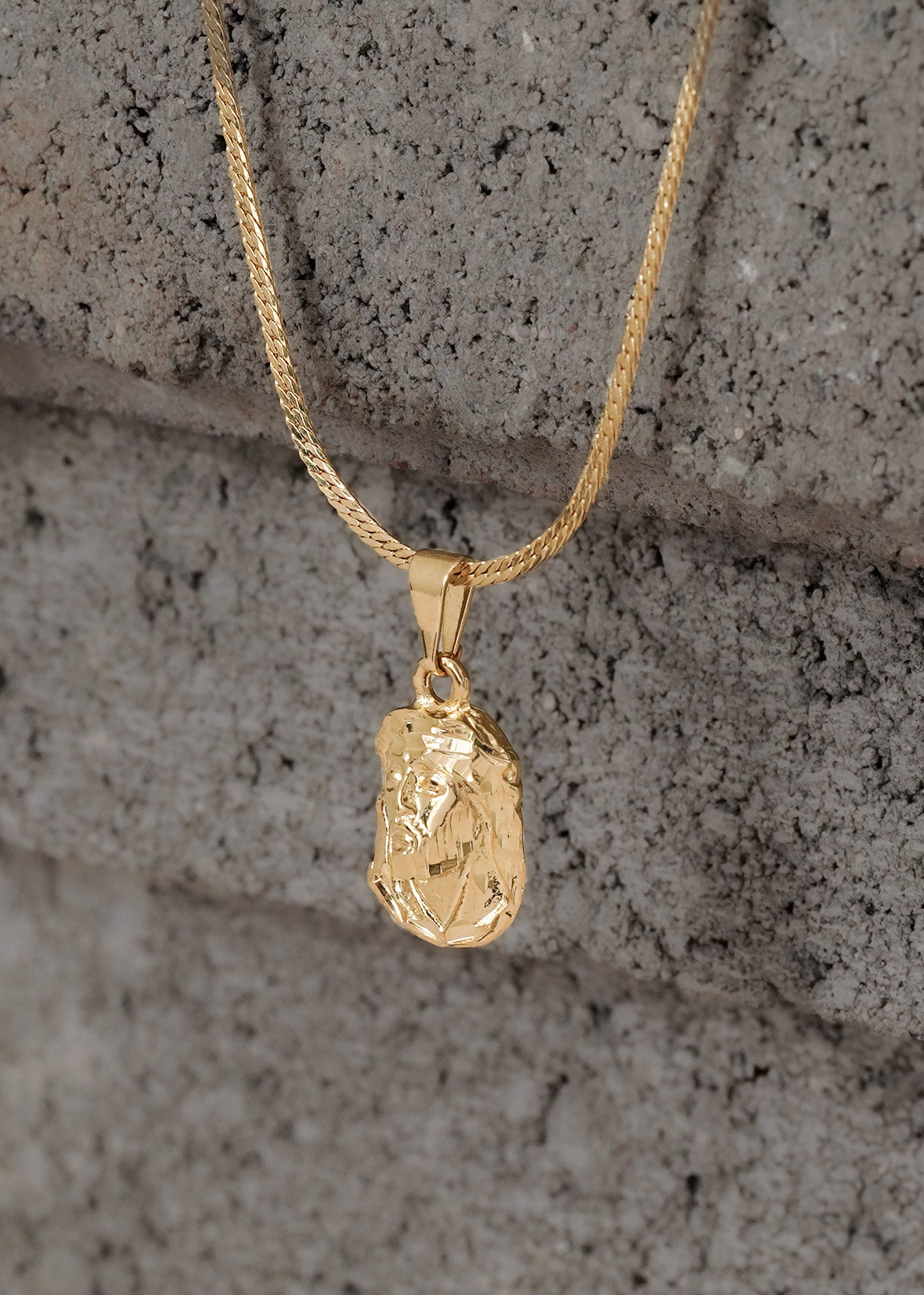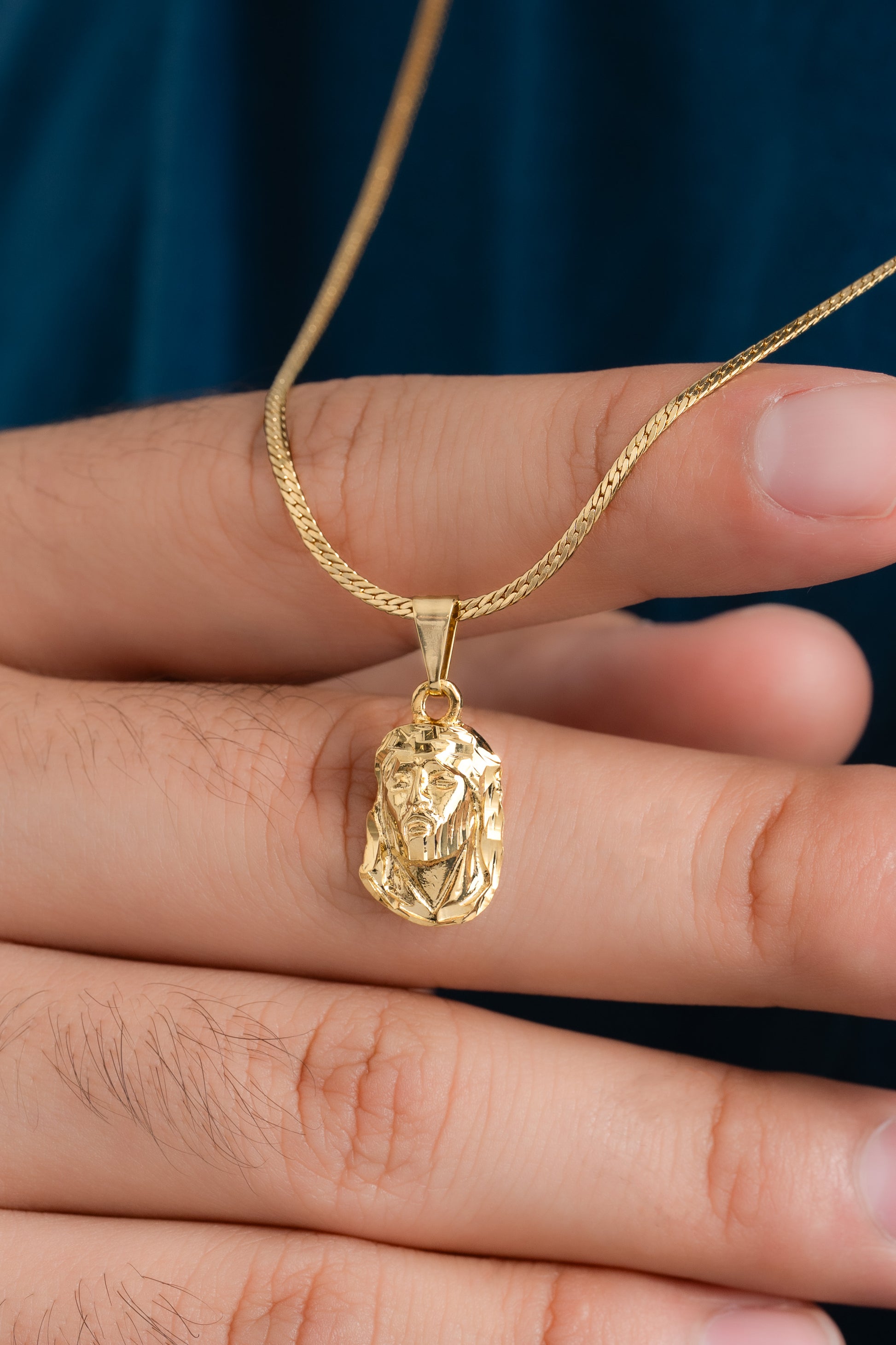 Cadena serpiente plana finita (65cm) + Dije rostro mediano tallado